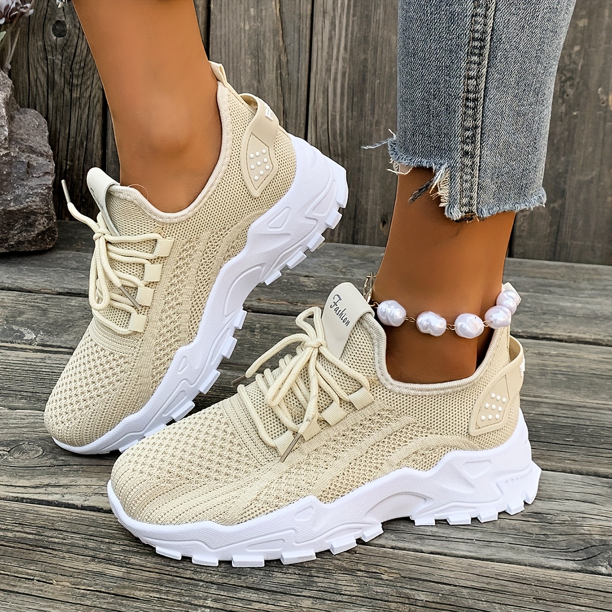 TEMU 여성용 통기성 니트 스니커즈 - 경량 EVA 밑창, 로우탑 레이스업 러닝화, 올시즌 편안함, 핑크 캐주얼 스니커즈, 캐주얼 스니커즈 | 패션 스니커즈 | 경량 신발