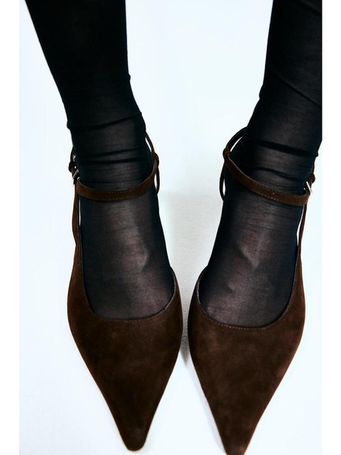 [에이치엔엠] 포인티드 토 레더 펌프스 다크 브라운 1254429002