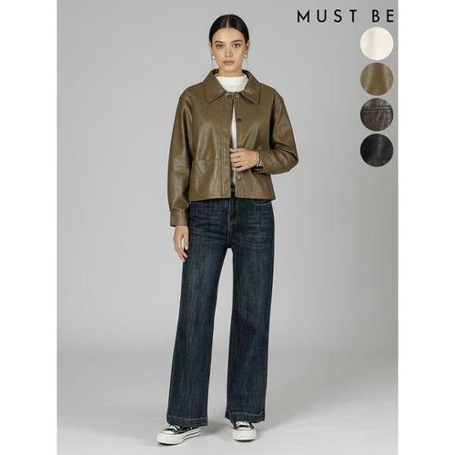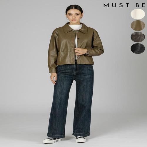 [머스트비]여성 카라 버튼 레더 자켓