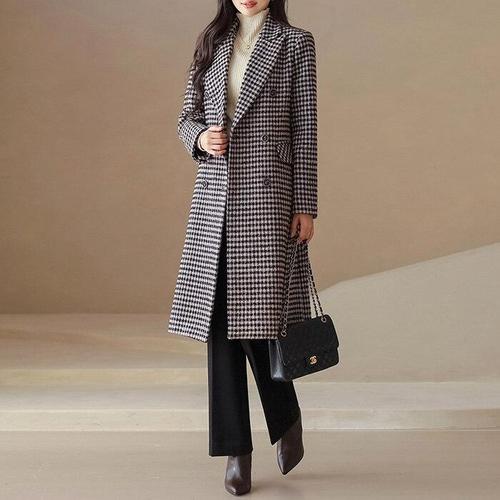 [스타일온미][스타일온미] 하베인 울 블렌딩 모직 클래식 체크 더블 롱 코트