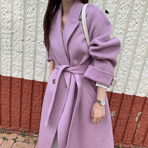 슈팅스타 / 시크 프랜치 심플 루즈핏 허리 스트랩 모직 롱 코트