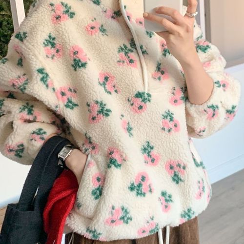 에르디테 / 플라워 꽃무늬 하이넥 루즈핏 양털 후리스 맨투맨 겨울 상의 3컬러