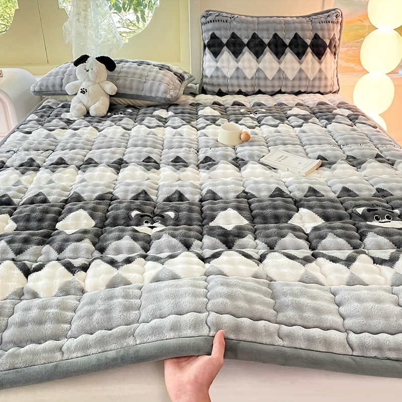 TEMU 1개 곰돌이 프린트 매트리스 보호 커버 및 매트리스 커버, 세탁 후 색상 변색 방지, 침실, 임대 건물 및 학생 기숙사에 적합, 추운 날씨 필수 시트, 세탁기 사용 가능 (베개 커버 미포함)|베개커버|매트리스커버