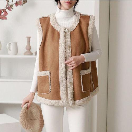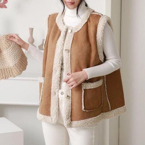 [셀러허브_여성트랜드패션]Rly 여성 겨울 양털 조끼 포근한 무스탕 스타일 베이