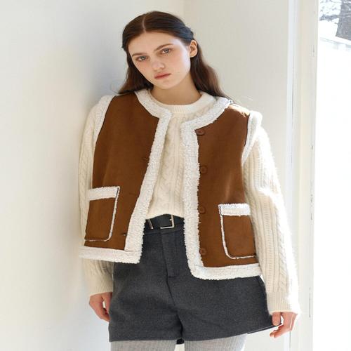 [위시드]양털 무스탕 버튼업 라운드넥 베스트 (WICDVT007)
