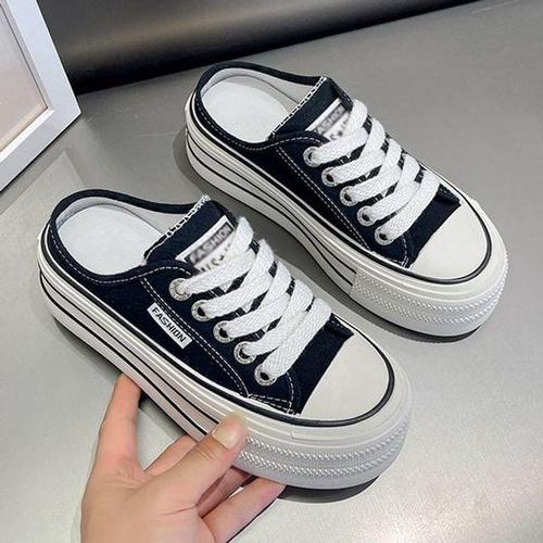 여성 캔버스 단화 학생 운동화 스니커즈 뮬신발 패션