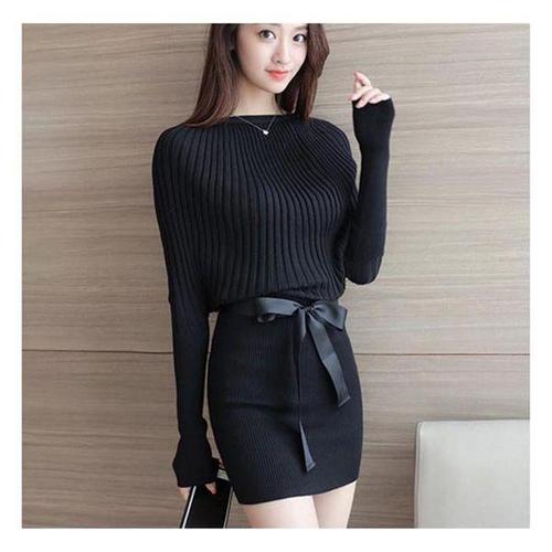 [에이치플러스몰]니트 미니 원피스 긴팔 리본벨티드 하객룩 데이트룩