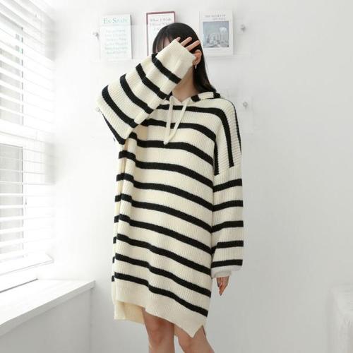 [유야]여성 후드 니트 단가라 미니 원피스 -FOP0221- 겨울