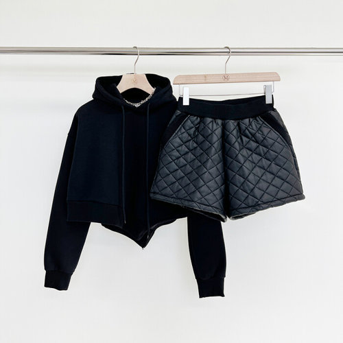 미즈큐즈 / 겨울 다이아 퀼팅 누빔 레더 패딩 반바지