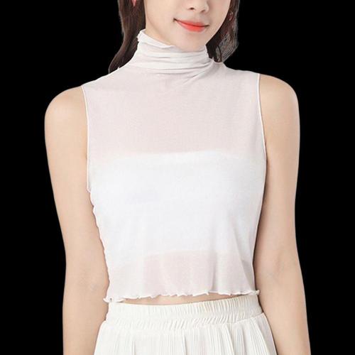[옷자락]여자 폴라 페이크카라 크롭 민소매 블라우스