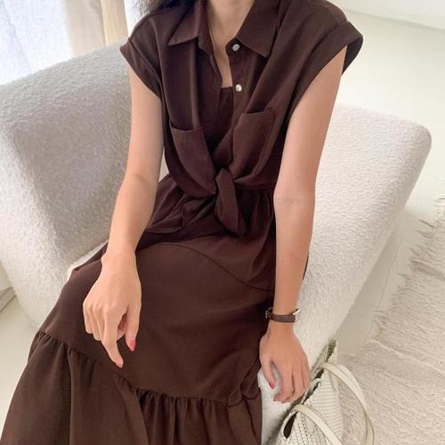 [JHQ3645U_53DR]여름 바캉스룩 셔츠 끈나시 롱원피스