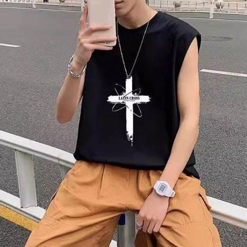 [에이치플러스몰]민소매티 힙한 패션 포인트 남성 라운드넥