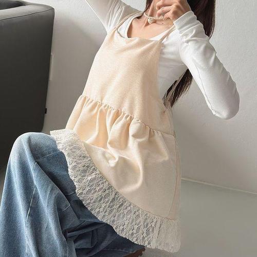 [옷자락] 여자 레이스 프릴 뷔스티에 백리스 루즈핏 끈 나시