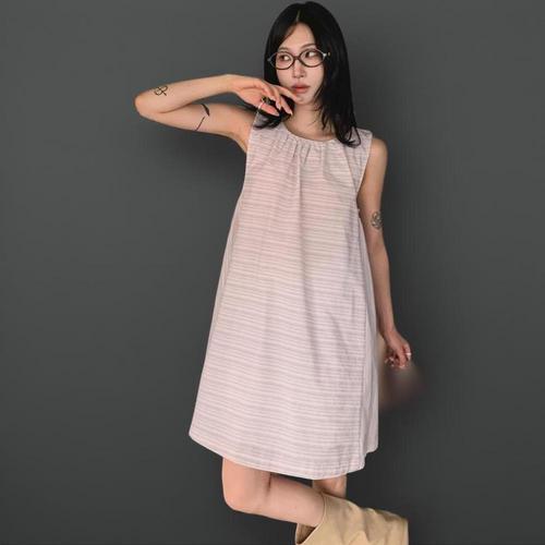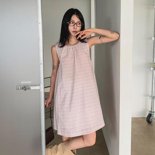 |KHO5707|여자 배색 스트라이프 면혼방 미니 나시 원피스
