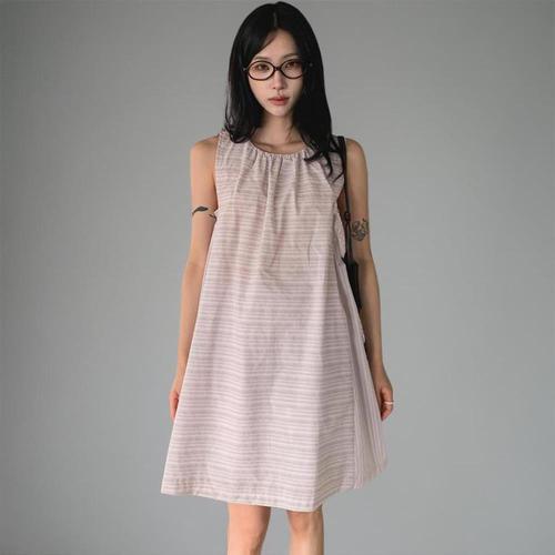 |KMO5699|여성 스트라이프 나시 원피스 셔링 미니 드레스 키치 스타일