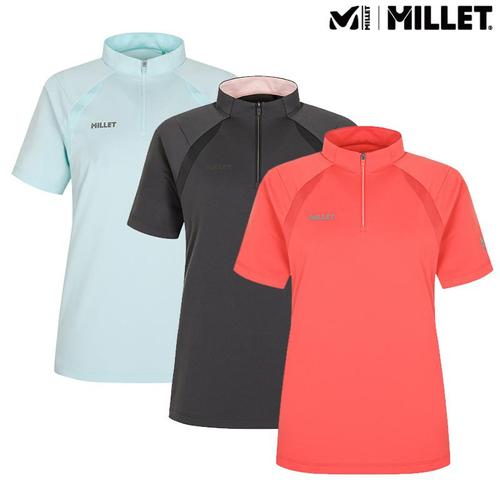 [밀레]밀레 [ 25신상 ] 여성 여름 반집업 신축성좋은 올 메쉬 반팔티셔츠 _