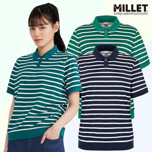 [밀레]여성반팔티 볼드 카라 스판 스트라이프 통풍