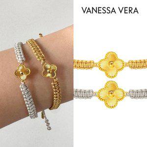 [골드피아] 14K 골든볼 + 14K 크로바 자개 실 팔찌/발찌