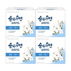 순수한면 슈퍼가드 생리대 날개형, 중형, 16개입, 4개