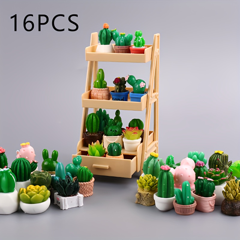 TEMU 미니어처 카투스 및 양치식물 테라리움 - 인형집 장식, 놀이세트 액세서리용 세부적인, 아름다운 데스크탑 식물 디스플레이|생생한 테라리움|세부적인 텍스처, 카투스 장식