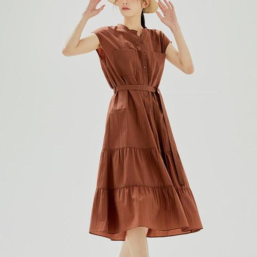 Destijl HC06 7부소매 주머니 바스락 카라 A라인 플레어 반팔 클래식 롱원피스 D2523op06B