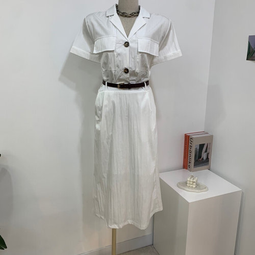씨샵인더룸 / (신상 무료배송)리뮤 바스락 아웃포켓 카라 반팔 롱 원피스 벨트 세트 2color
