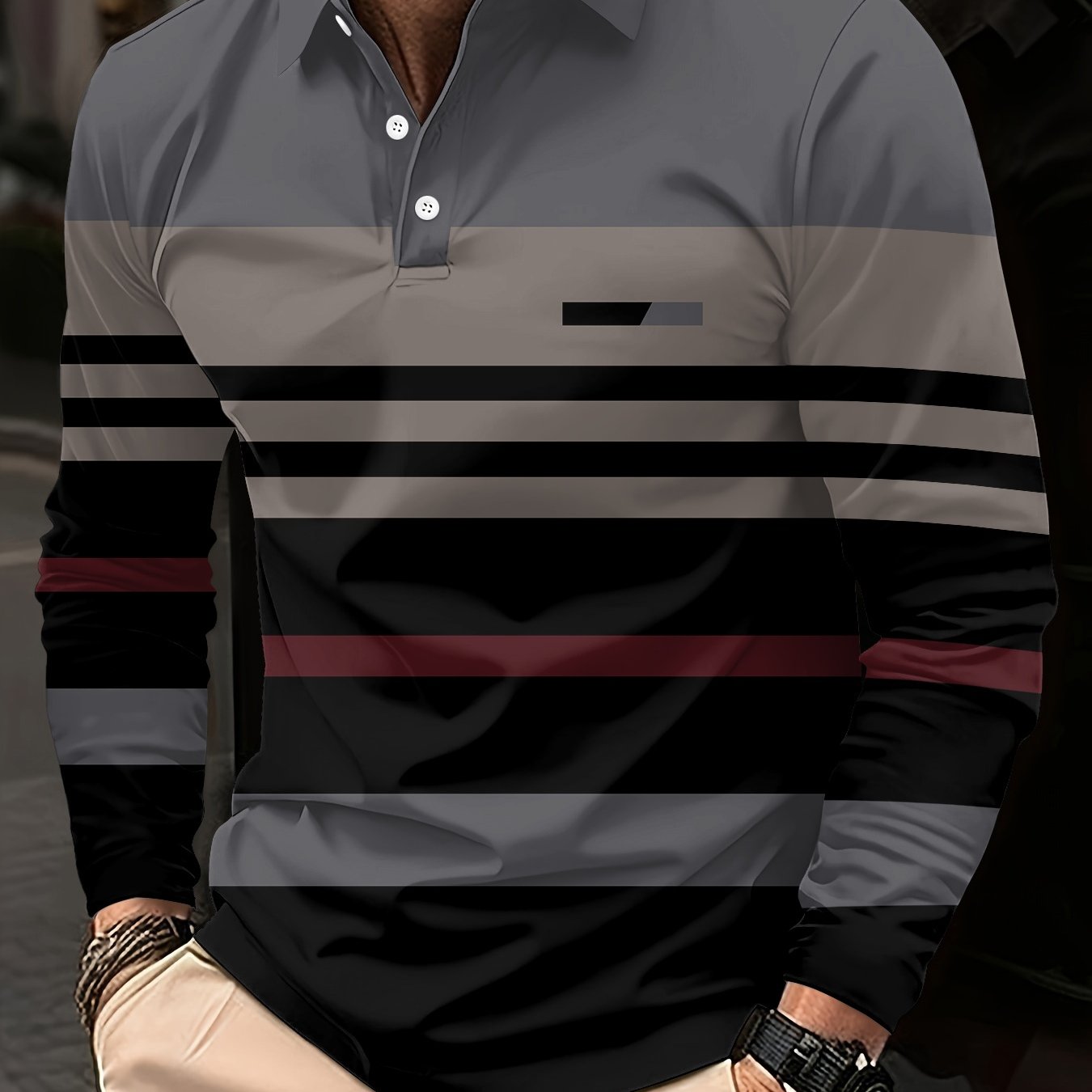 TEMU 남성용 긴팔 폴리에스터 골프 & 테니스 셔츠 - 캐주얼 디자인, 약간 신축성 있는 원단, 버튼업 칼라, 가볍고 통기성 좋은 봄/가을용, 야외 스포츠 및 캐주얼 착용에 완벽, 클래식 칼라 디자인, 편안한 핏, 니트 소재, 남성 의류, 남성 폴로 셔츠, 남성 티셔츠
