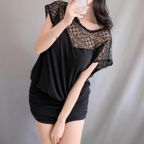|KCO5717|여성 레이스 시스루 미니 원피스 바스트 셔링