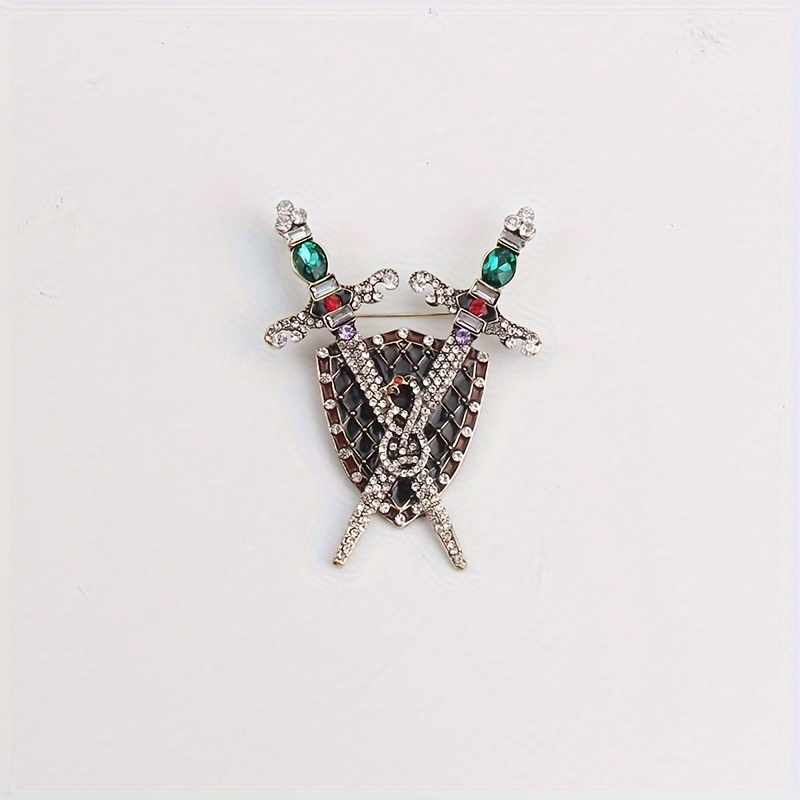 TEMU 스톤 장식 검과 방패 브로치, 크리에이티브 레트로 뱃지, 의류 액세서리용 메탈 브로치