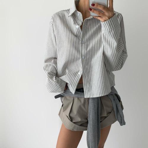 옷자락 / 여자 가을남방 스트라이프 세미크롭 박스핏 면 셔츠