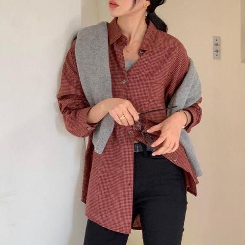 [신상오픈런]여성용 체크 패턴 박스핏 코튼 셔츠
