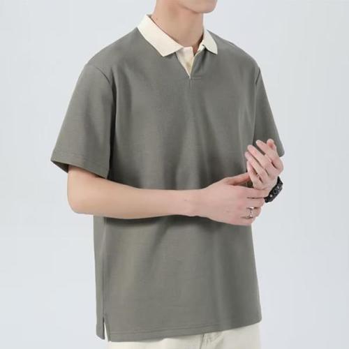 [옷자락]남자 박스핏 반소매 캐쥬얼 콘트라스트 카라 출장 티셔츠