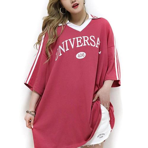 [리빌모아]여자 빅사이즈 박스 카라 반팔 롱 티셔츠 DMES-TSH-STS14351083