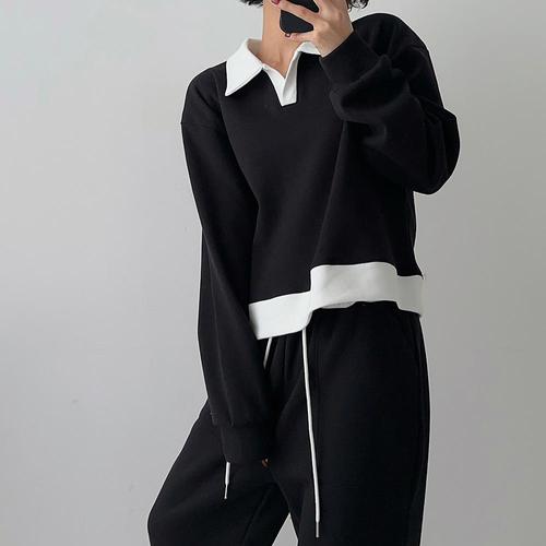 [다잇템_패션]여자 겨울럭비티셔츠 플리스 카라 박스 맨투맨