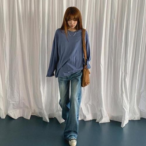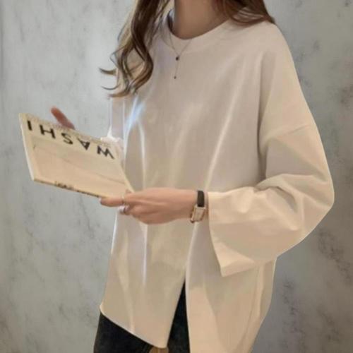 [옷자락]여성 단색 박스핏 사이드 슬릿 라운드넥 긴팔티