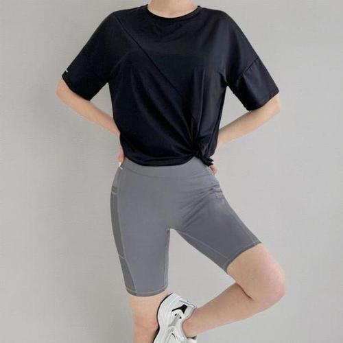 [미라클세븐]여성용 루즈핏 쿨링 반팔 티셔츠와 스판 5부 레깅스 세트