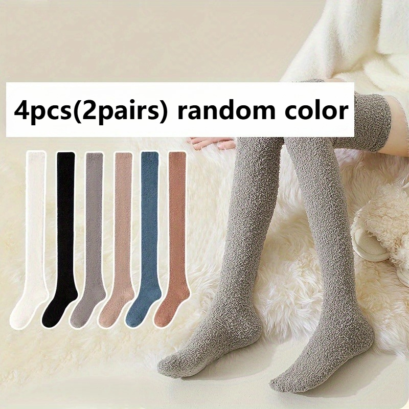 TEMU 여성용 겨울용 따뜻한 플러시 무릎 위 (OTK) 양말 4개 - 두꺼운 아늑한 컬러 긴 스타킹, 실내/야외, 날씨 및 선물용