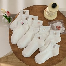 워더미 여성용 깔끔 자수 발목 양말 10종 세트 M1001