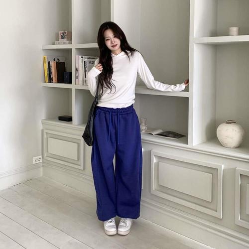 [옷자락]여성 기모 와이드 발목 밴딩 디테일 조거 팬츠