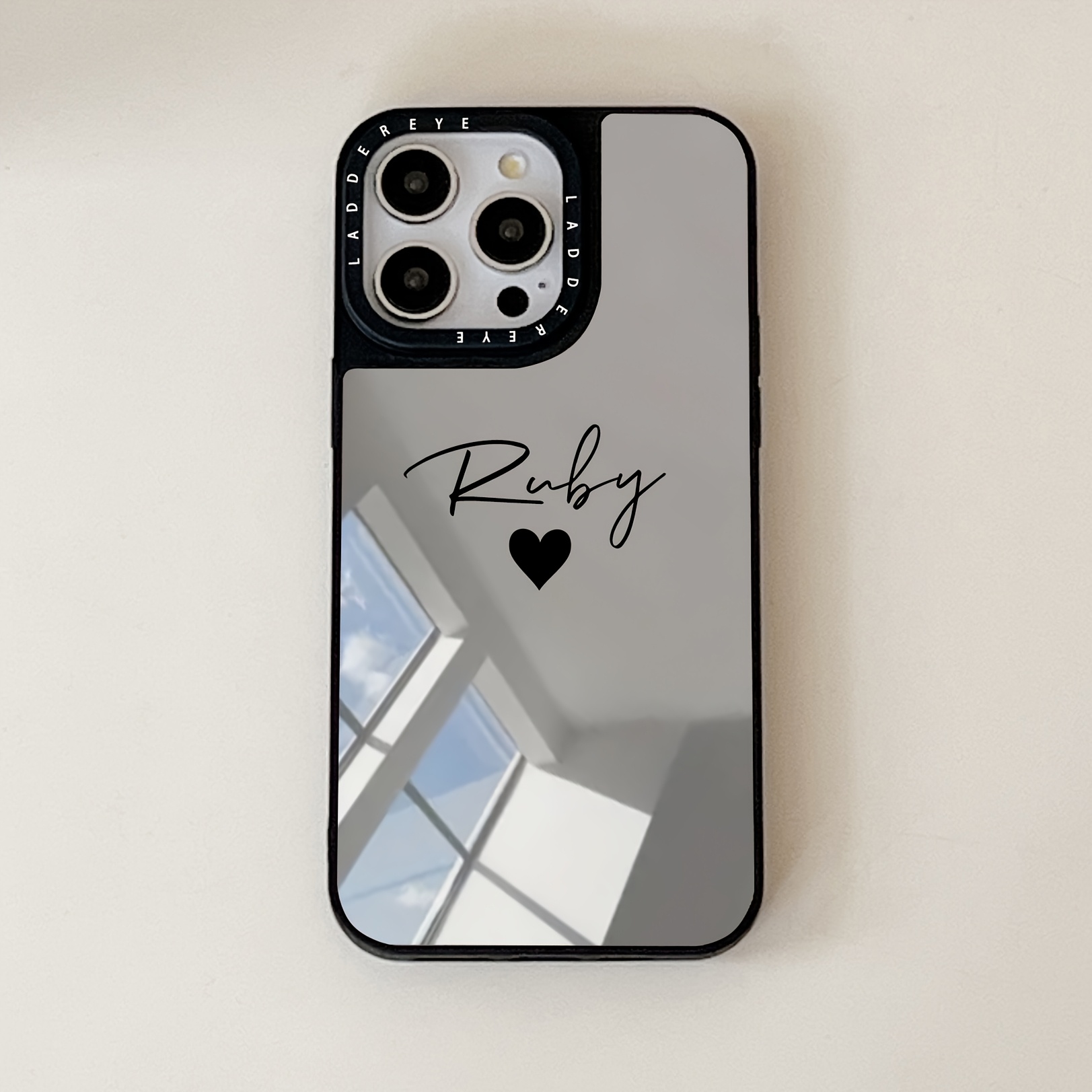 TEMU 휴대폰 케이스 - 이름과 하트 모양 디자인으로 맞춤 제작 가능한 폰 케이스, 아이폰 11부터 17 Pro Max까지 호환. 반사 미러 패턴의 스타일리시한 케이스는 보호 커버 역할도 합니다.