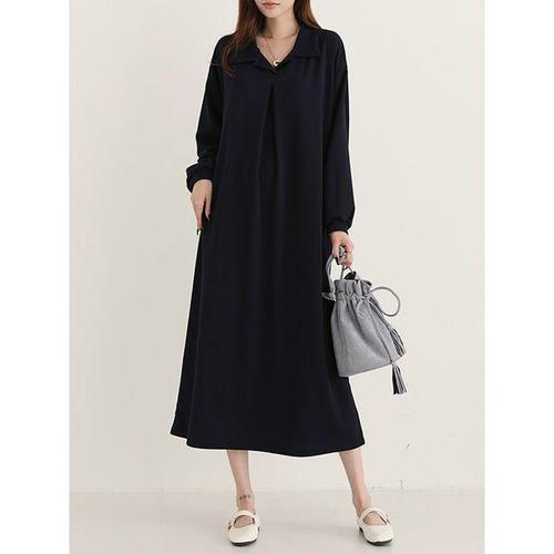 [시크루즈]타스 핀턱 루즈핏 카라 롱 원피스_BDOP048