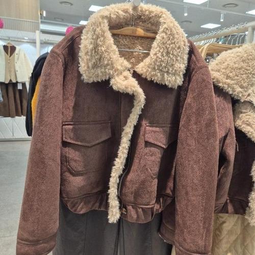 [밸리걸]하이넥 퍼안감 페이크 레더 블루종 자켓 824710
