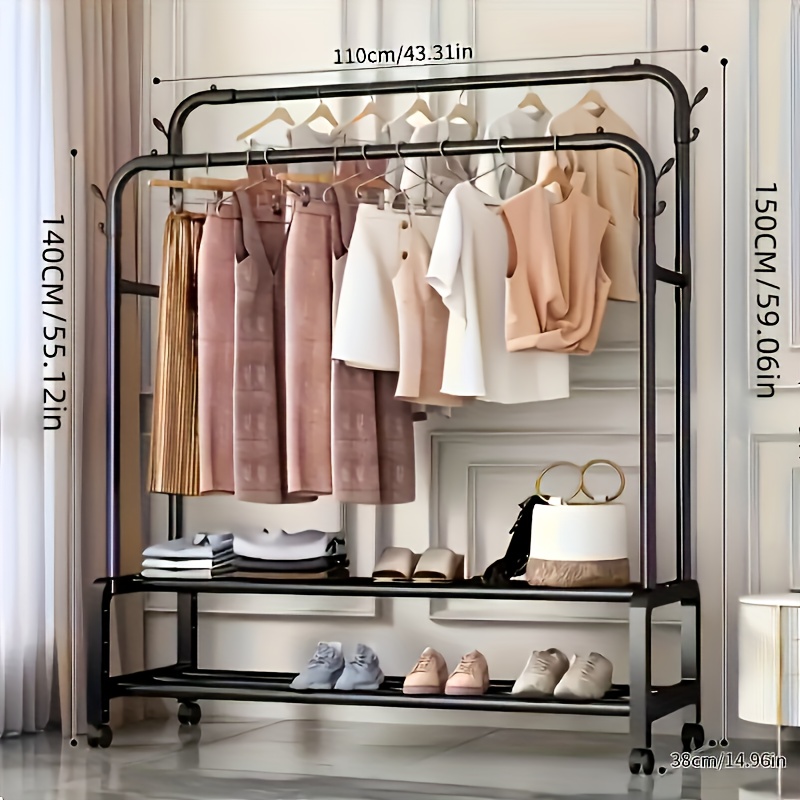 TEMU 1개 모던 스타일 공간 절약형 다기능 옷걸이 - 코트, 셔츠, 스카프용, 쉬운 DIY 조립, 침실, 발코니, 세탁실에 적합한 강력한 철제 프레임 플라스틱 옷걸이, 블랙/화이트/블루|스탠드옷걸이