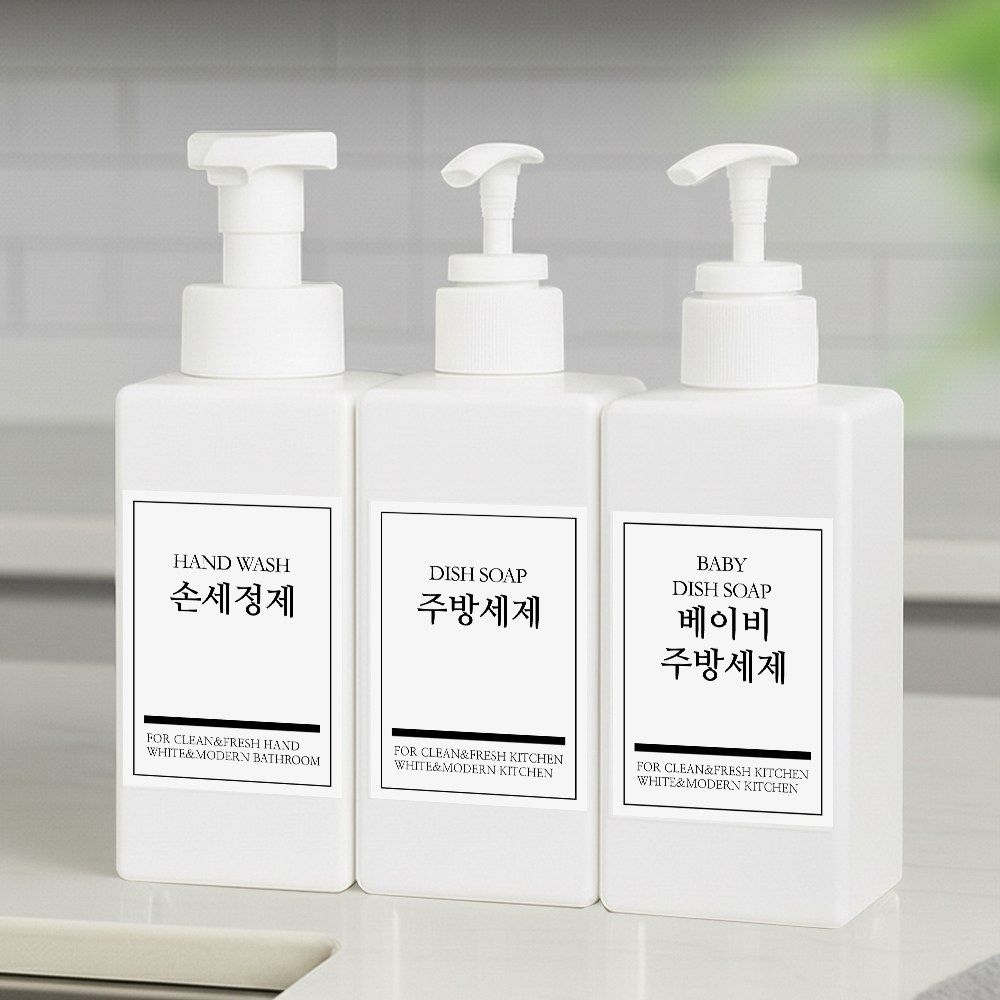 3종세트 국산 주방세제통 핸드워시디스펜서 버블 리필용기 500ml 라벨포함