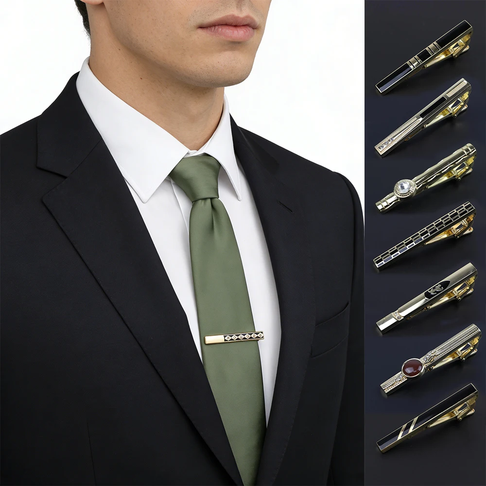 신제품 남성용 메탈 골드 타이 클립 웨딩 파티 비즈니스 액세서리 밝은 크롬 스테인리스 스틸 소재 주얼리 버클 타이 클립