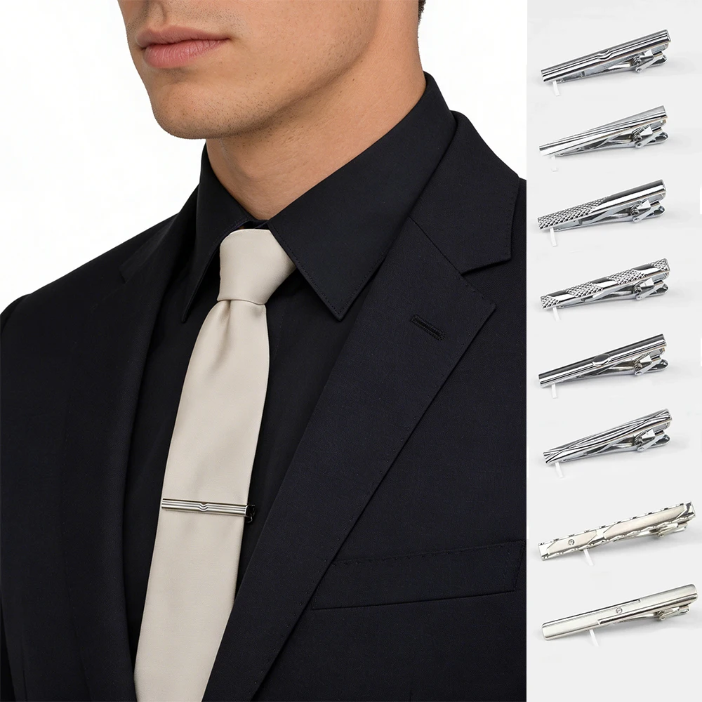 신제품 남성용 메탈 실버 타이 클립 웨딩 파티 비즈니스 액세서리 밝은 크롬 스테인리스 스틸 소재 주얼리 버클 타이 바