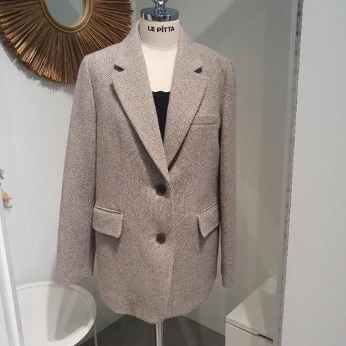 [바쏘옴므]FW 가을겨울 울99% 베이지 헤링본 체크 콤비자켓 브라운 SY4JQ54-2