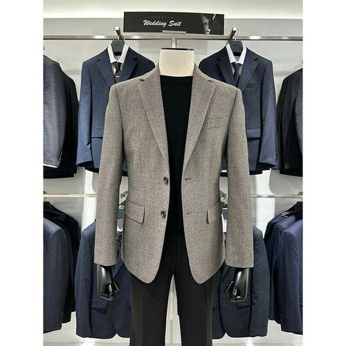 [바쏘]남성 자켓 베이지 순모 글렌체크 캐주얼 콤비 WSAFY3JQ26A