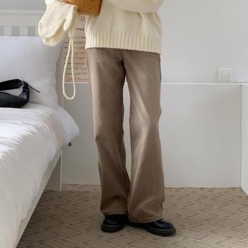 [옷자락]여자 코튼진 워싱팬츠 보라색 H라인 피그먼트 면바지