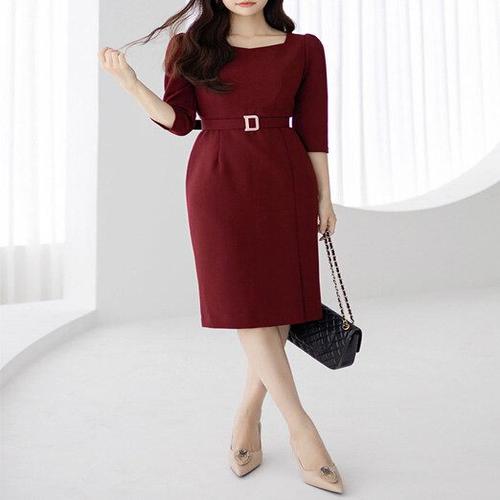 [스타일온미]다이넬 쥬얼리 벨트SET 스퀘어넥 퍼프 슬림 원피스